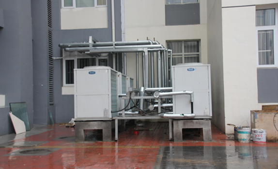 天津市職業(yè)大學(xué)學(xué)生宿舍樓采用DKFXRS-33IIB10機(jī)組與DKFXRS-33IIB結(jié)合使用,在夏季制冷的同時有效的回收熱量制取部分免費(fèi)的熱水,回收熱源,進(jìn)一步的起到了節(jié)能的作用,為學(xué)生提供生活熱水。經(jīng)過兩年多來的運(yùn)行得到了客戶的充分好評。并且由于空氣能不存在太陽能吸熱效率下降的問題,使用至今效果非常好。并且前期投資明顯小于太陽能,經(jīng)過統(tǒng)計空氣能的運(yùn)行成本與太陽能是一樣的均為:12°電/噸水;所以空氣能的優(yōu)勢越來越多的得到了廣大用戶的認(rèn)可。