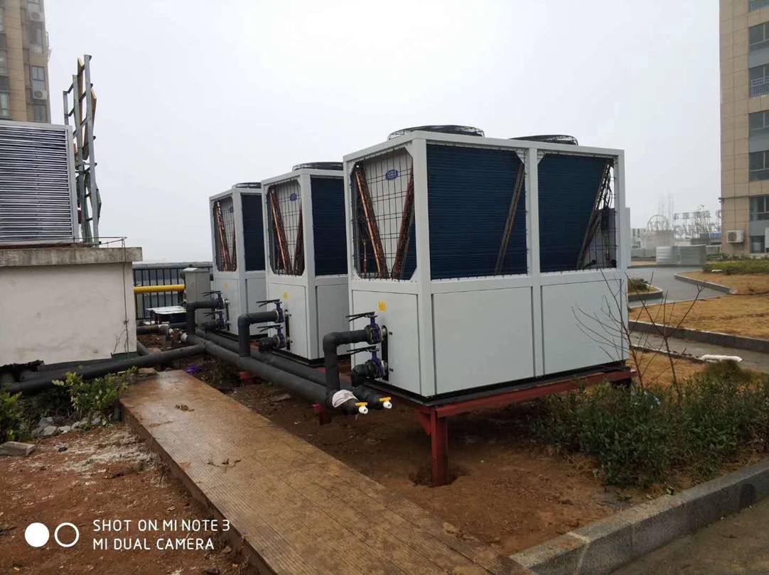該項(xiàng)目實(shí)際采暖面積為1400平,室內(nèi)采用32個(gè)風(fēng)盤末端,選用天舒3臺24匹風(fēng)冷模塊空調(diào)機(jī)組,實(shí)現(xiàn)冬天制取45度熱水來室內(nèi)采暖,室內(nèi)升溫速度快,效率高;夏天制取7度冷水使室內(nèi)維持在25度左右,為健身愛好者提供了舒適的體感。